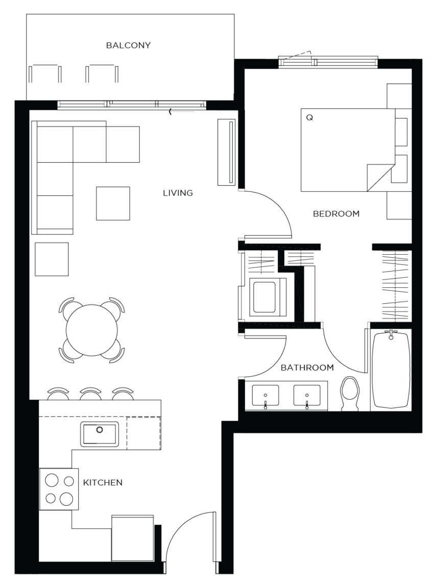 1 Bedroom + Flex, 1 Bathroom, 711 Sq. Ft.