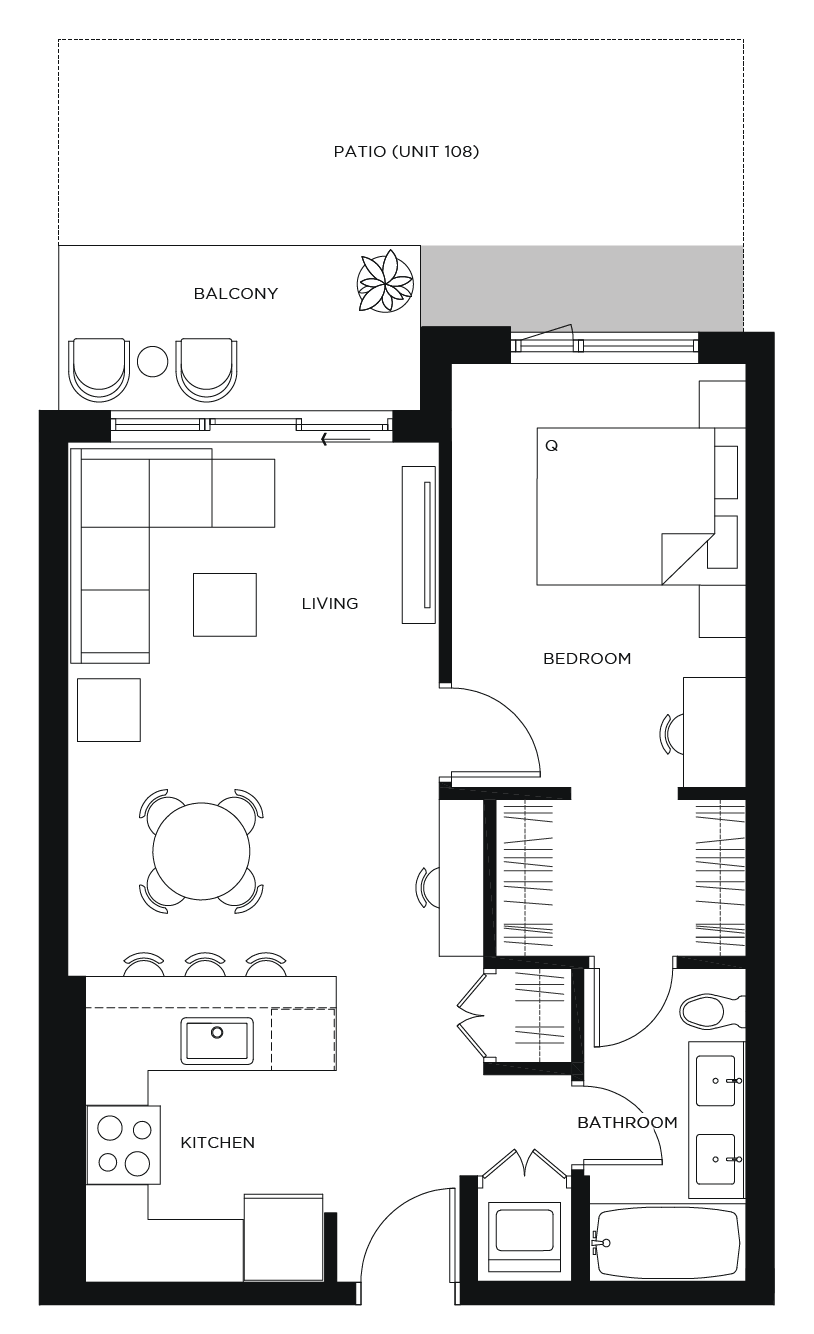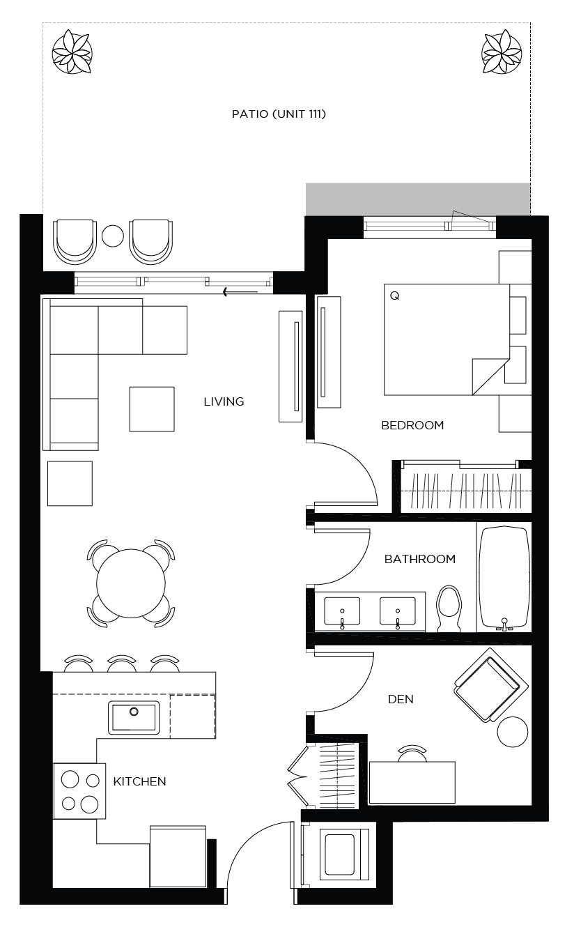 1 Bedroom + Den, 1 Bathroom, 695 Sq. Ft.