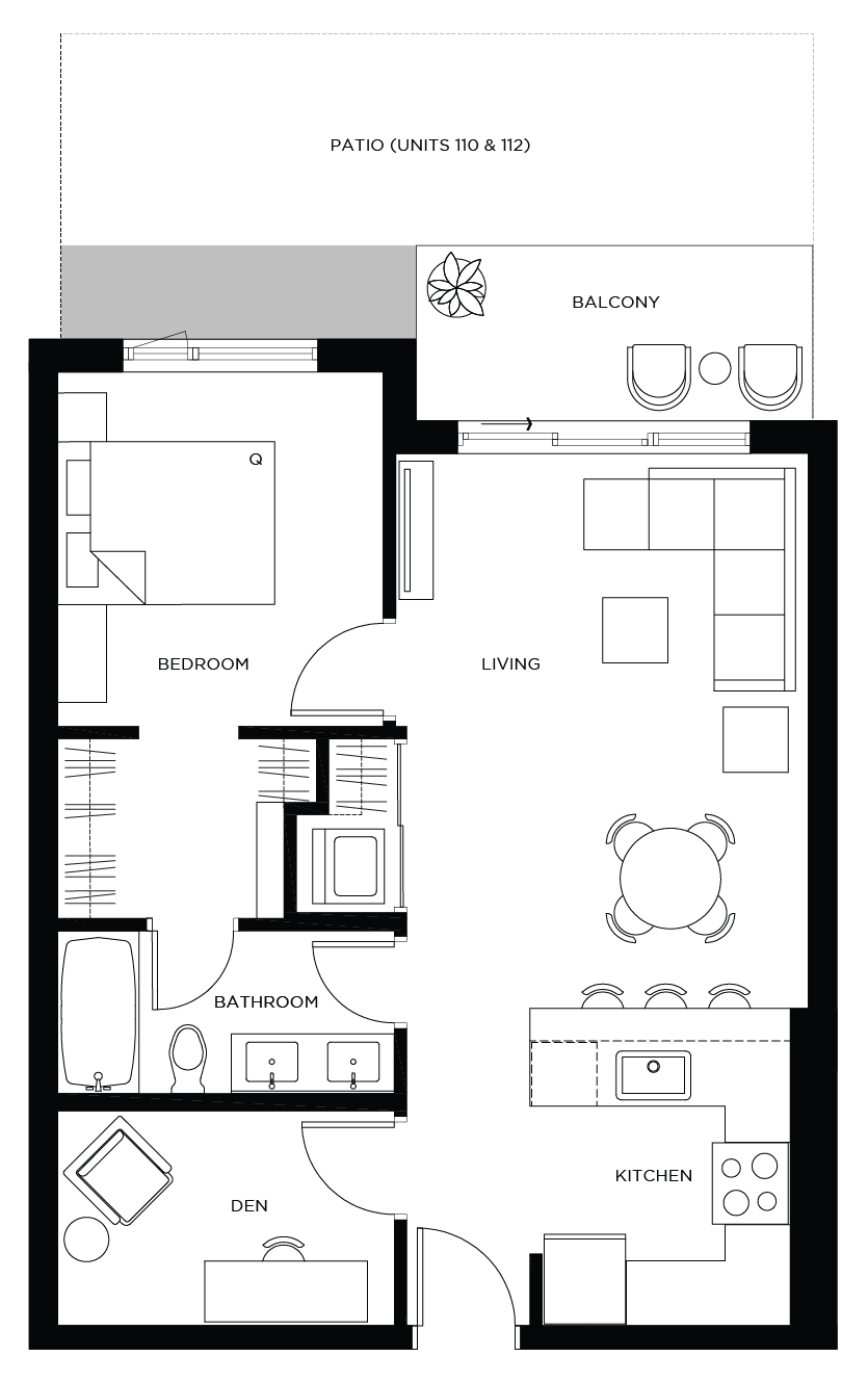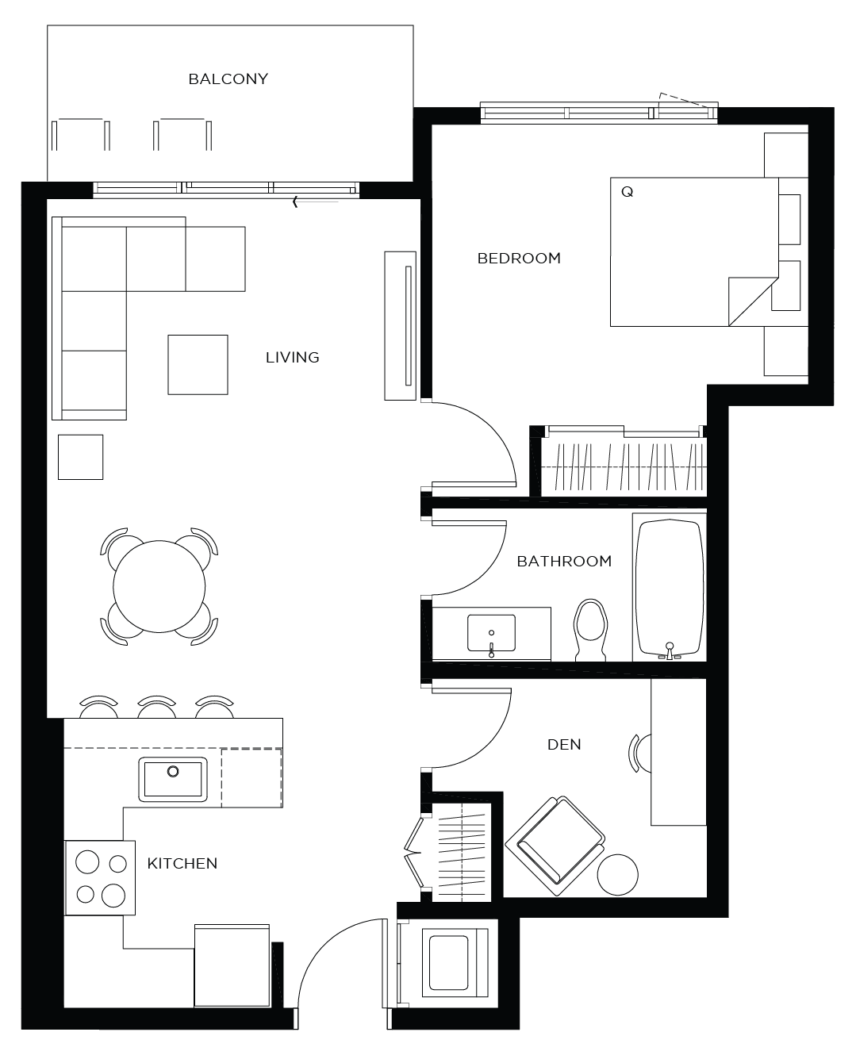 1 Bedroom + Den, 1 Bathroom, 631 Sq. Ft.