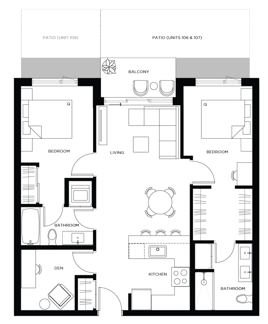 2 Bedroom + Den, 2 Bathroom, 923 Sq. Ft.